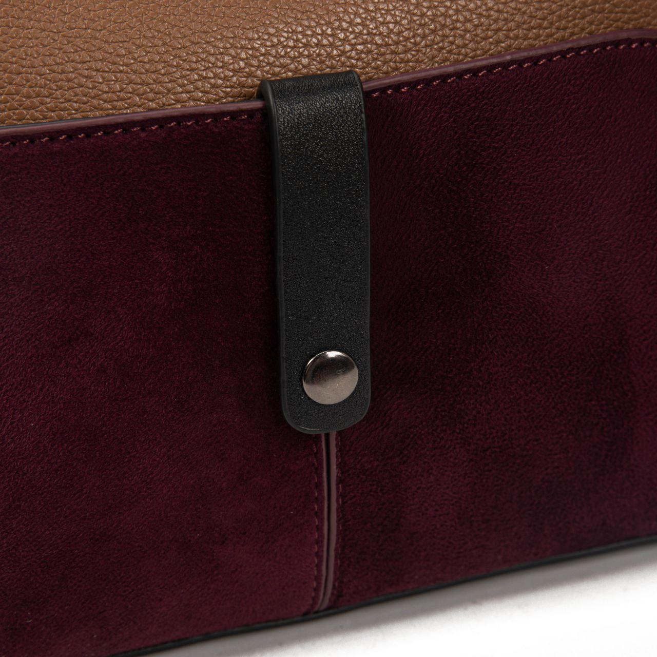 La correa ajustable te permite llevarlo cruzado o al hombro según tu look del día. El bolsillo frontal con cierre a presión es perfecto para tener lo más importante siempre a mano, mientras que su interior con cremallera asegura tus pertenencias. La mezcla de tonos burdeos, camel y negro aporta un aire sofisticado y moderno, fácil de combinar con outfits casuales o más elegantes.