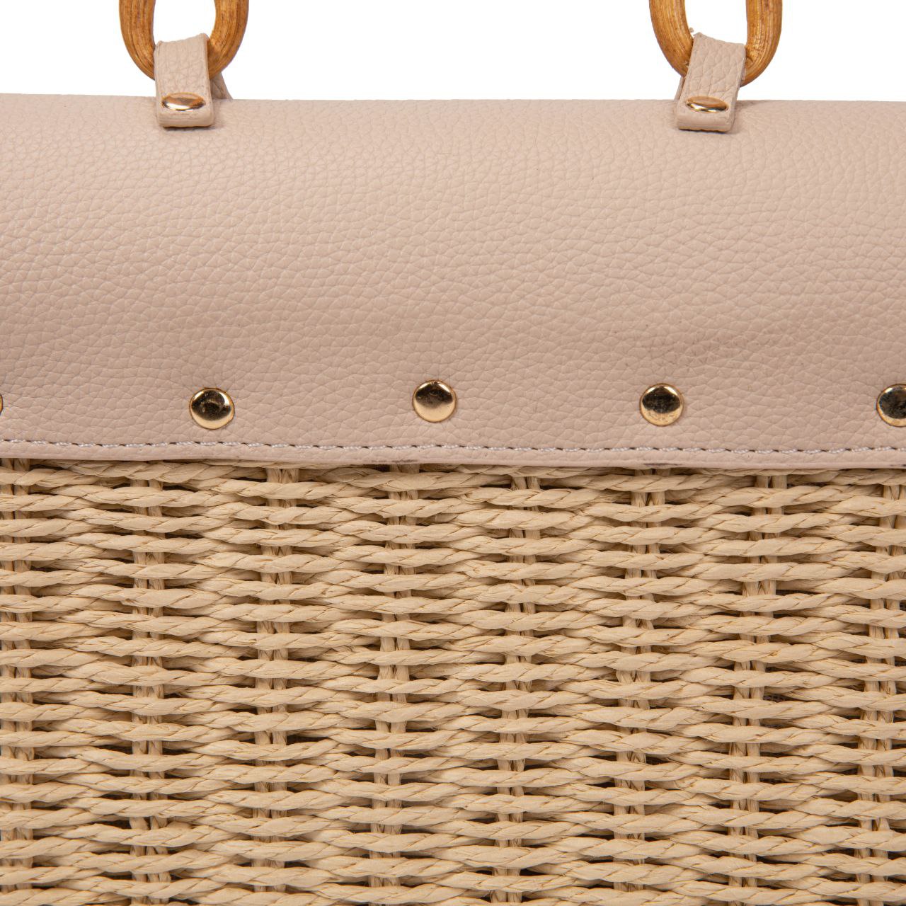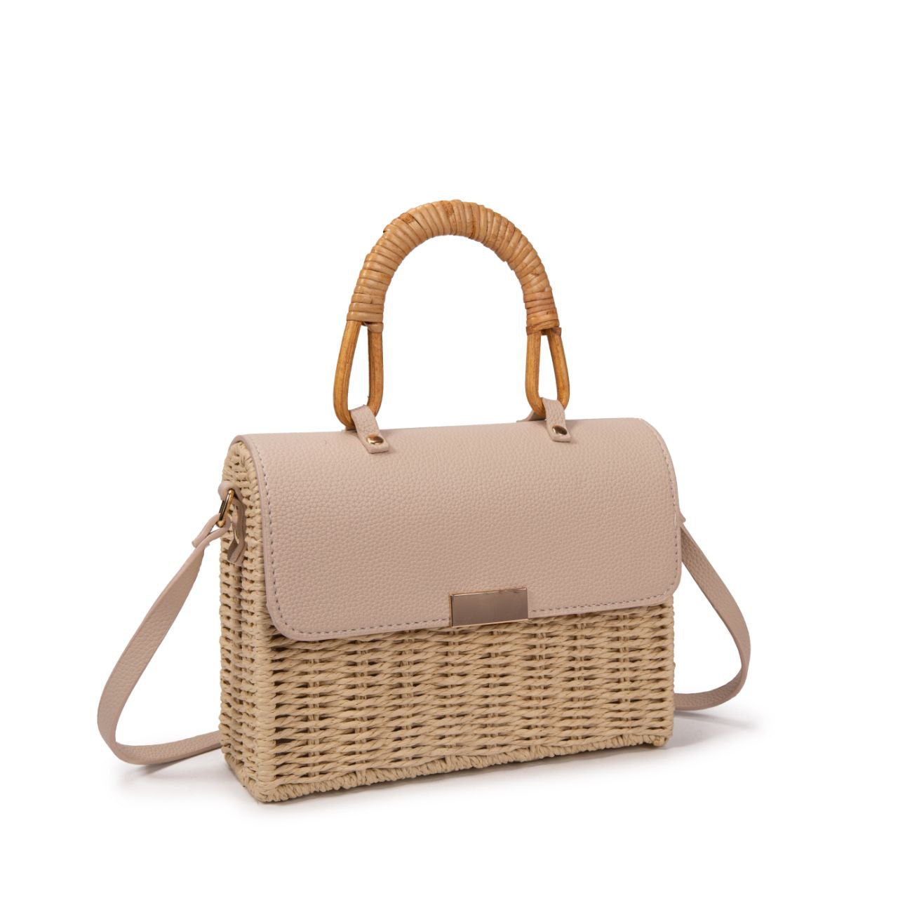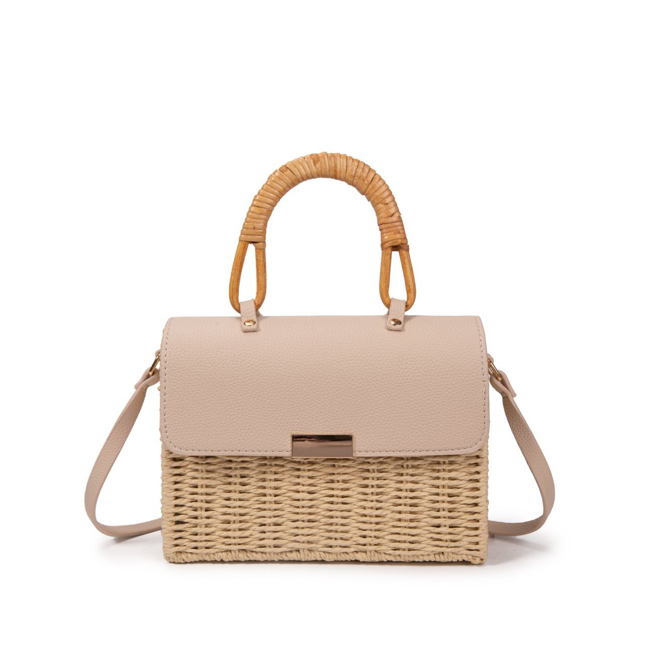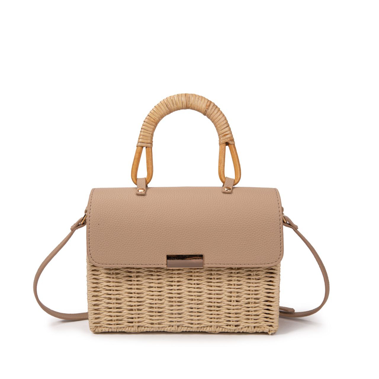 ✅ Diseño Único: Parte inferior tejida a mano en estilo paja natural (80% papel), con solapa superior de polipiel (20% PU) suave y elegante.