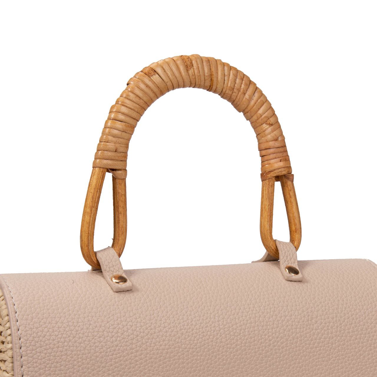 Bolso De Playa Estilo Rústico Con Asa De Bambú Y Cierre Magnético – Bolso De Mano De Paja Y Polipiel Para Mujer