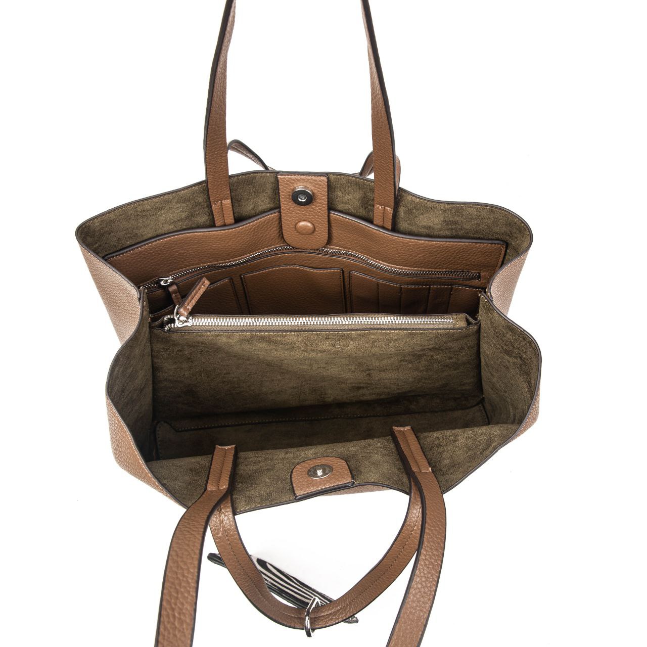 Con medidas de 37×29×12 cm, es el bolso shopper perfecto para acompañarte al trabajo, a la universidad o a una tarde de compras. Su interior espacioso con compartimentos y cremalleras mantiene todo en orden: desde tu portátil hasta tus cosméticos o documentos. Las asas dobles permiten llevarlo cómodamente en la mano o al hombro, adaptándose a tu ritmo sin perder elegancia.