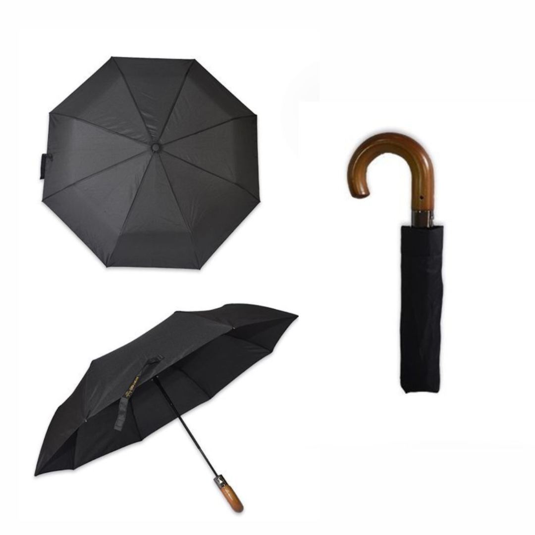 Paraguas Automático Antiviento Con Mango De Madera, 98 cm Ancho y 60 cm Alto